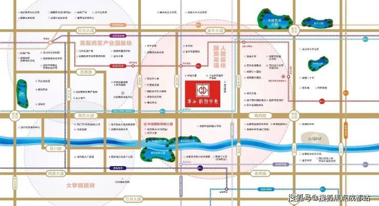 为驱动国宾交往中心的高质量发展,金牛集优势资源,打造金周路TOD,以站点为核心,进行圈层开发:
