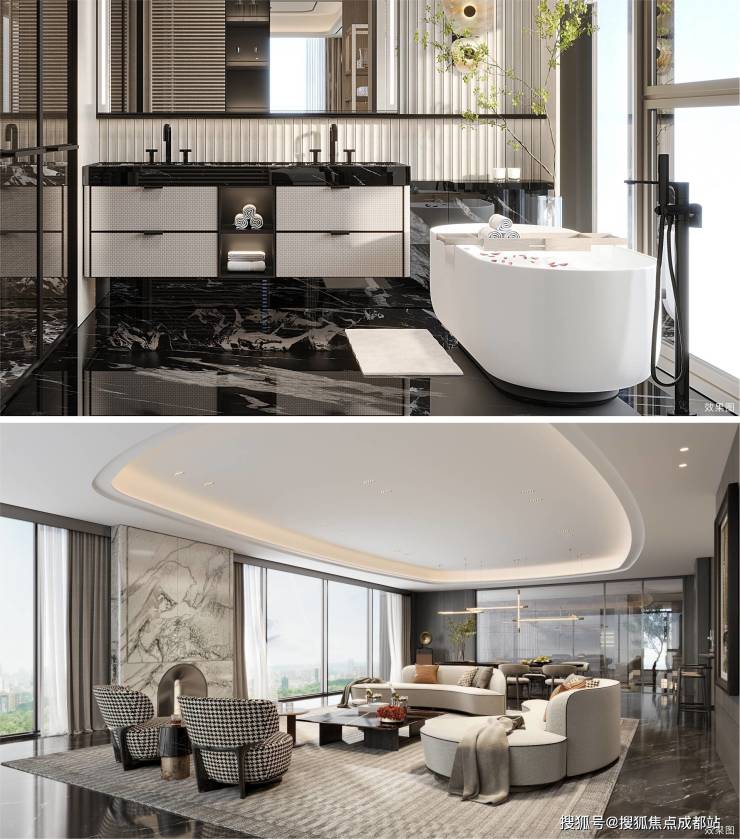 项目建筑屋顶设计汲取纽约ONE57"玻璃帆船"灵感,搭配天然奢石竖向装饰,玻璃幕墙占比突破90%。精选伊朗水墨玉、土耳其白月光等珍稀石材,配以嘉格纳顶级厨具系统与瑞士劳芬定制卫浴,从选材到配置全面诠释"奢养"内涵。
