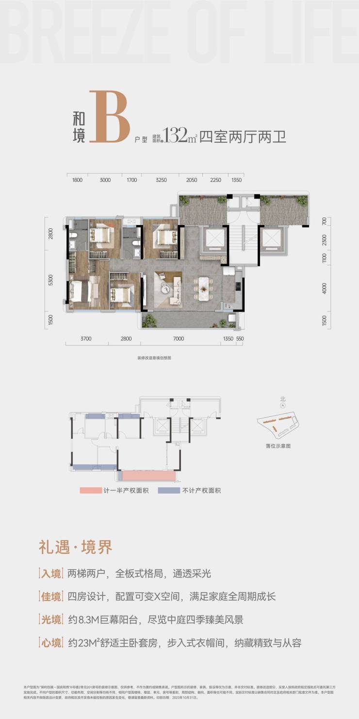 户型:113㎡套三双卫、132㎡套四双卫