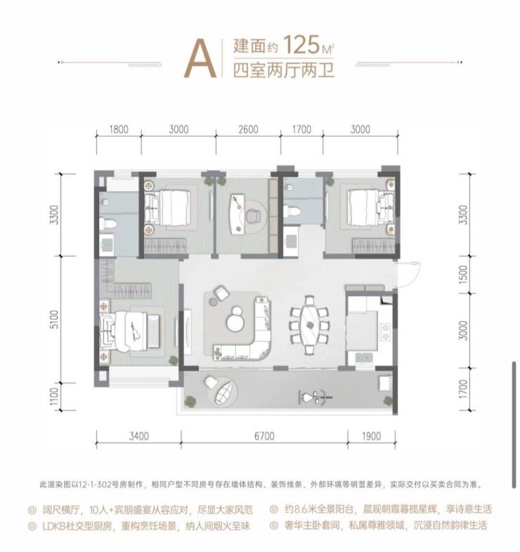 8.6米全景阳台,南北通透格局,明厨明卫设计