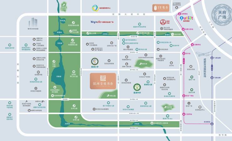 以家长最关心的教育资源举例,双流是成都第一个实现15年免费教育的区域,也是二圈层公认的教学“优等生”,实力毋庸置疑。具体到项目本身,堪比教科书级别。项目北侧约300m即是百年历史名校棠湖小学,成都市的重点小学之一,师资力量相当雄厚,2014年以来,相继获得“四川省示范家长学校”、“四川省实验教学示范校”、“新优质学校”等十余项省级以上荣誉称号!而按2023双流区最新小学划片,小区所在街道的学区正是棠湖小学,近水楼台先得月,你就说,这“月”够不够书香?(具体就读信息以每年官方划片为准)这是银河玺悦书香最大的卖点。