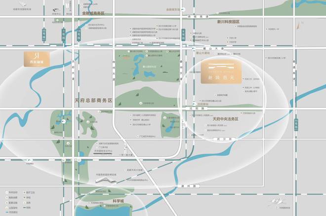生态:麓山国际生态区、麓湖生态区、天府森林公园、红石公园、万安体育公园