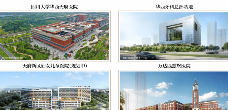 三甲保障:华西天府医院(已运营);国际医疗:万达匹兹堡医院(在建,国际JCI认证标准)