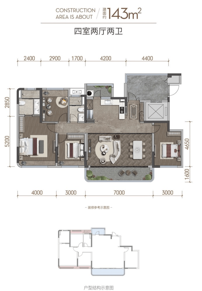 2.0容积率,全南北向T2布局,主城少有酒店式服务住区建面约143-170m主城宽境四房,立序高阶人居