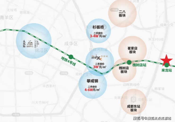 品质城东:纵观主城高端住区,城东强改善属性,区域二手房价攀升,攀成钢4-6万元/㎡,杉板桥3-4万元/㎡,万象城超3万元/㎡,均为主城前列