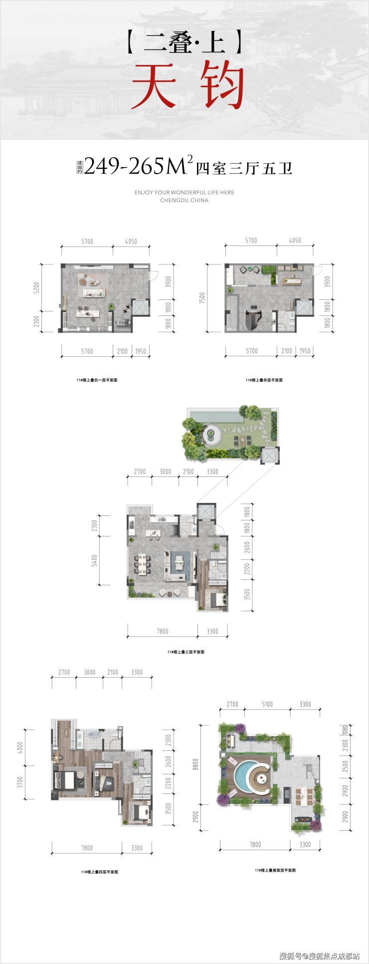 双叠共4栋:上249-265㎡(天钧),下288-298㎡(露华)。