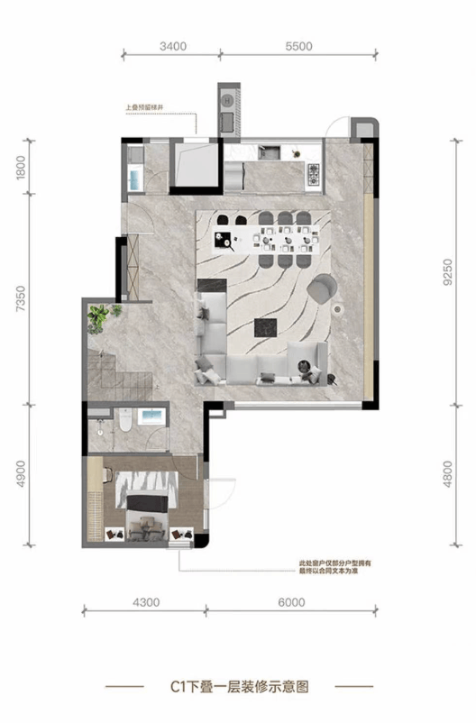 C1户型|叠拼|建面约238㎡| 四室两厅四卫