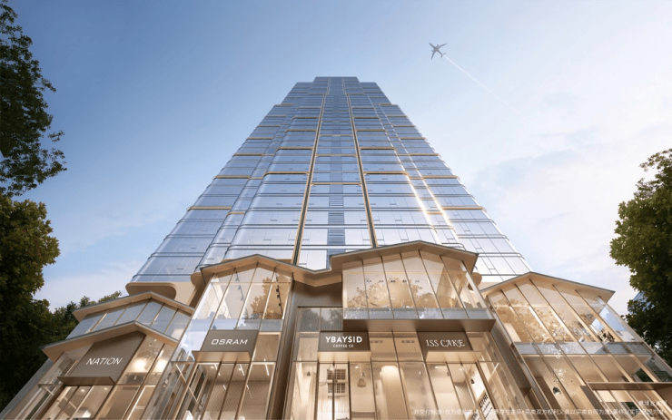 超高层塔楼的立面设计,横向上通过台阶状处理矩形形体,圆角柔化角部,以减轻巨大体量的压迫感,同时最大程度优化内部视野。竖向上,采用金属材料的"拱券"划分建筑形体,融入竹子节节高升的意象,以当代材料呈现出典雅韵味。