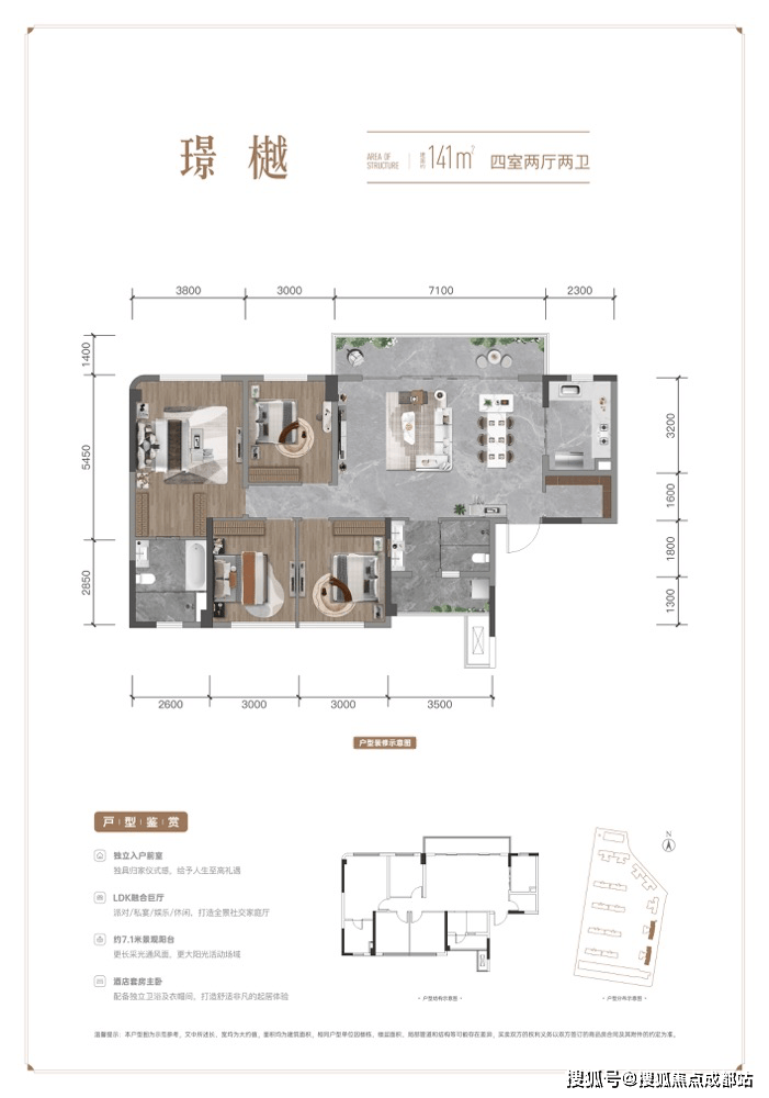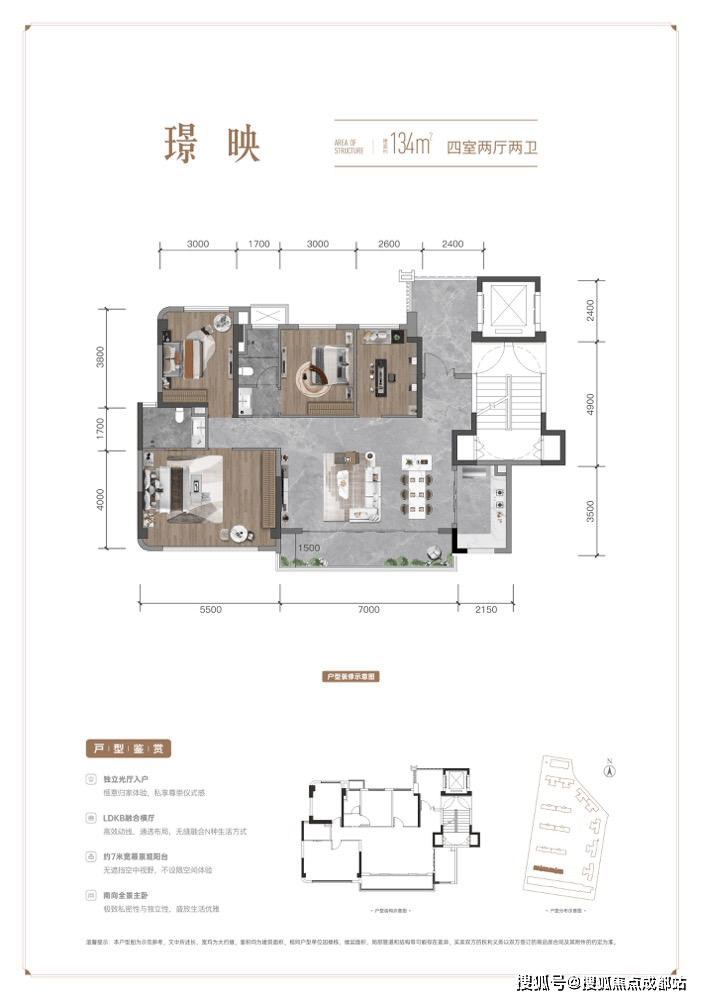 亮点:全屋系统门窗,可无界观景;次卧面宽≥3米,动静分区明确。