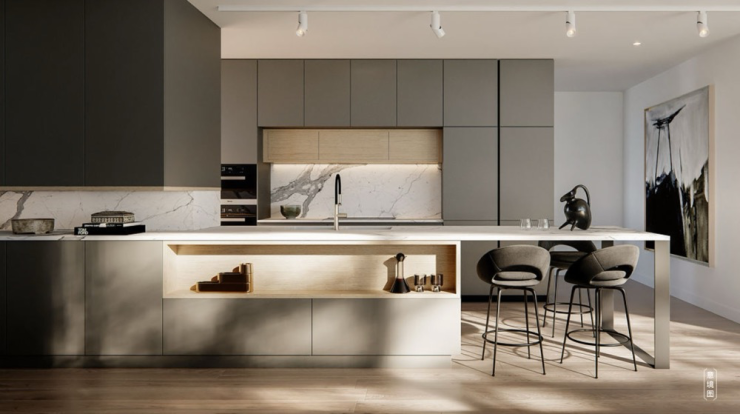 中西岛台,家庭交流的新中心,下班归家迎接的永远是饭菜的香气和围坐的家人。