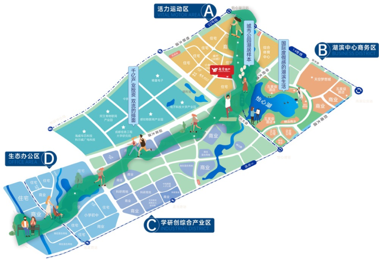 怡心湖目前已拥有千亿产业投资,代表性的清华同方,浪潮,电子科大科技园已经引入。高产业造就强未来