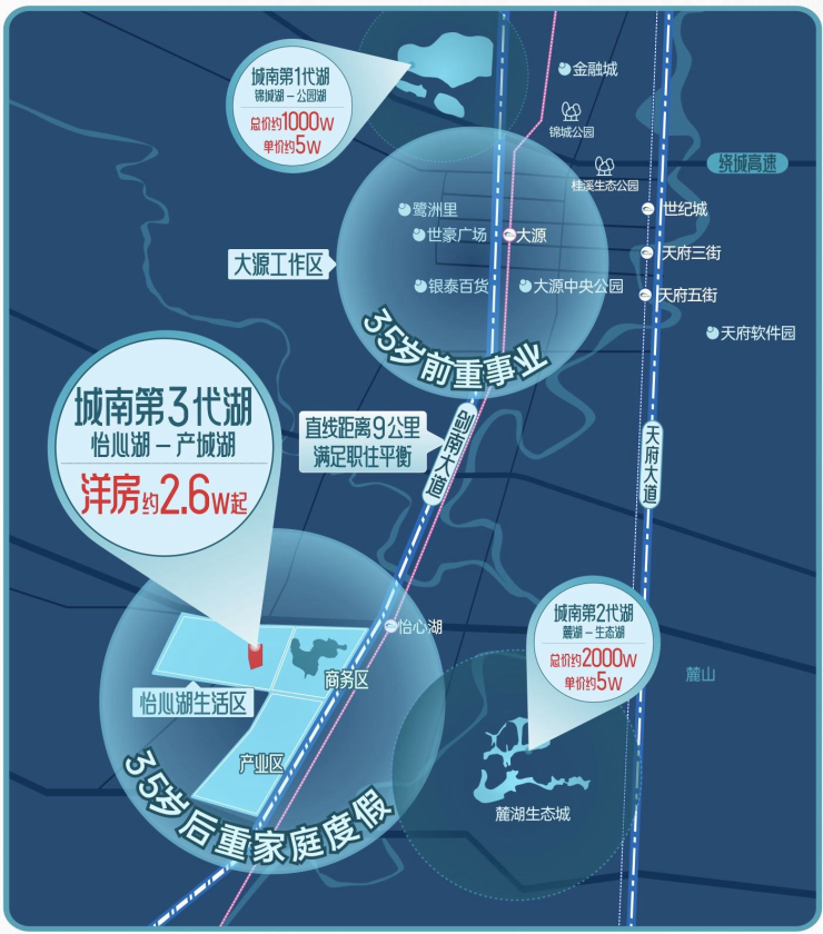 在城南人人都想拥有一线湖居生活,锦城湖一线湖居二手房已达 1000w+,麓湖一线湖居 5w+,怡心湖第三代湖居生活,无需4w+,无压力置换湖居度假生活