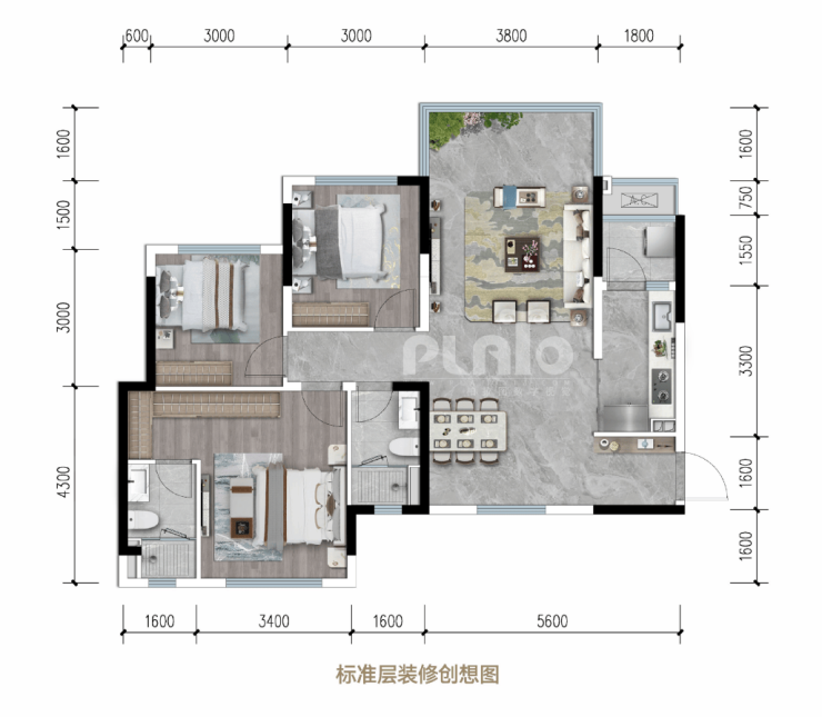 → 户型亮点:方正通透布局,270°环幕视野,约32㎡客餐厅越级之作