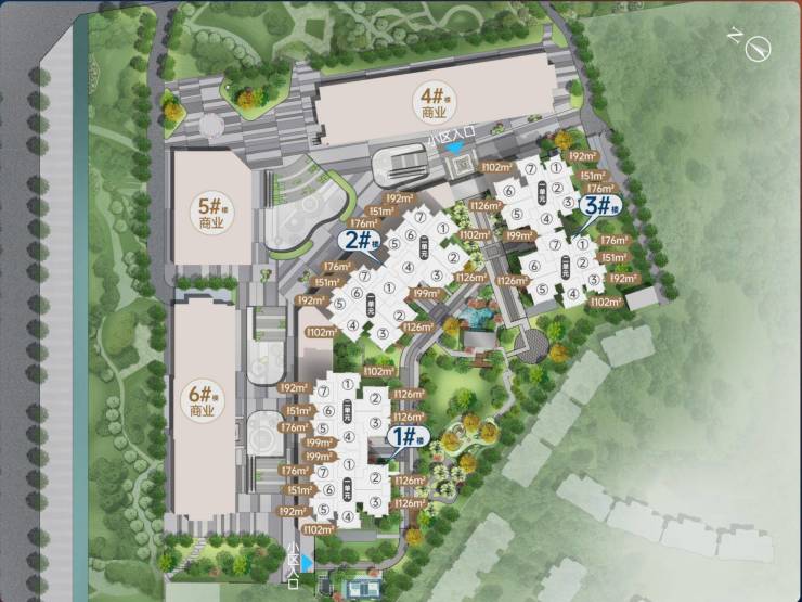 五重景观体系:通过森居景观轴串联迎宾树阵、浮岛会客等五大主题空间,营造沉浸式园林体验