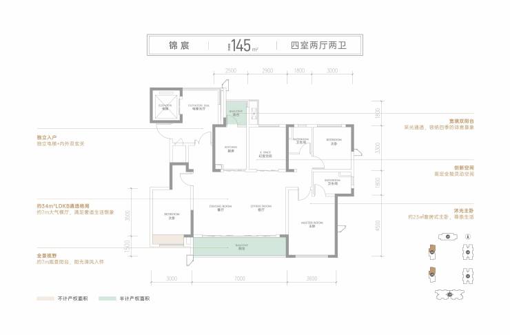 双阳台延展空间丨多功能灵活布局丨全景采光设计丨优化动线规划