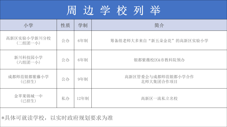 构建全龄段优质教育体系:高新区新川系列幼儿园(二幼至四幼)、银都紫藤小学(南北校区)、省教科院附属学校等名校环伺。(具体学区划分以政府最新政策为准)