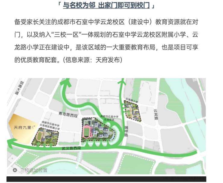 项目一街之隔更有石室中学云龙校区附属小学,石室中学云龙校区,云龙路小学等