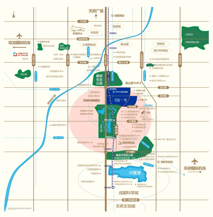 【医疗配套】规划建设成都万达UPMC国际医院,周边汇集华西天府医院、省妇幼保健院等多家三甲医疗机构