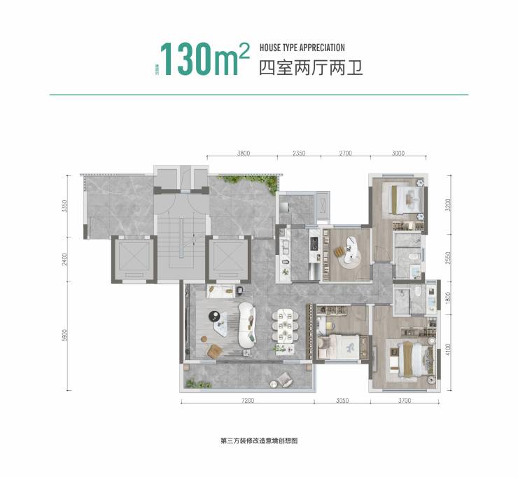主力户型涵盖建面99-140㎡三至四房,户户电梯独立入户