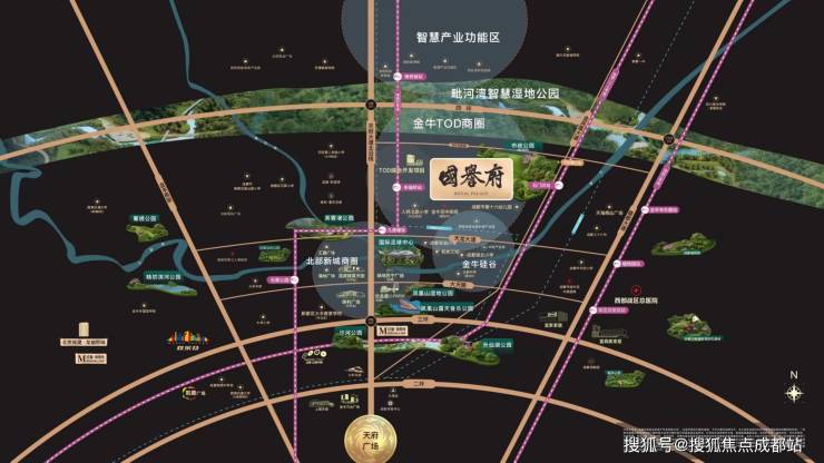 国誉府总占地约101亩,在金牛TOD旁,容积率仅 1.78低密住区,外享三大公园环幕视野,内拥一环两轴十二院园林景观,建面约 180-274m²花园跃墅,公园城市生活的理想诠释